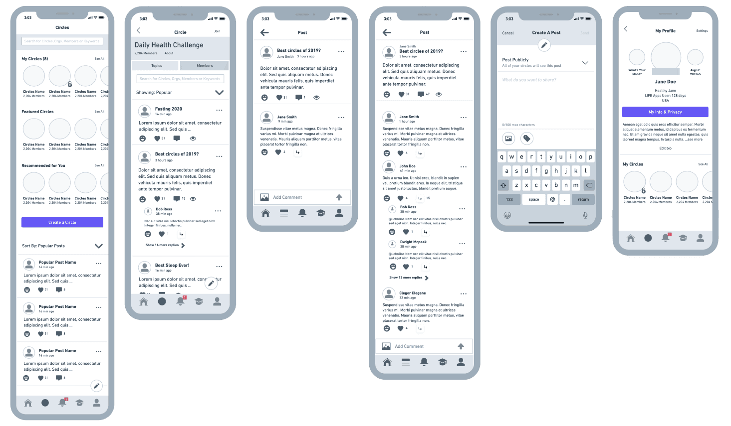 To provide support for users as they progressed through their health journey, we created a social platform where our users could communicate and support each other as well as a place for health professionals to provide guidance.