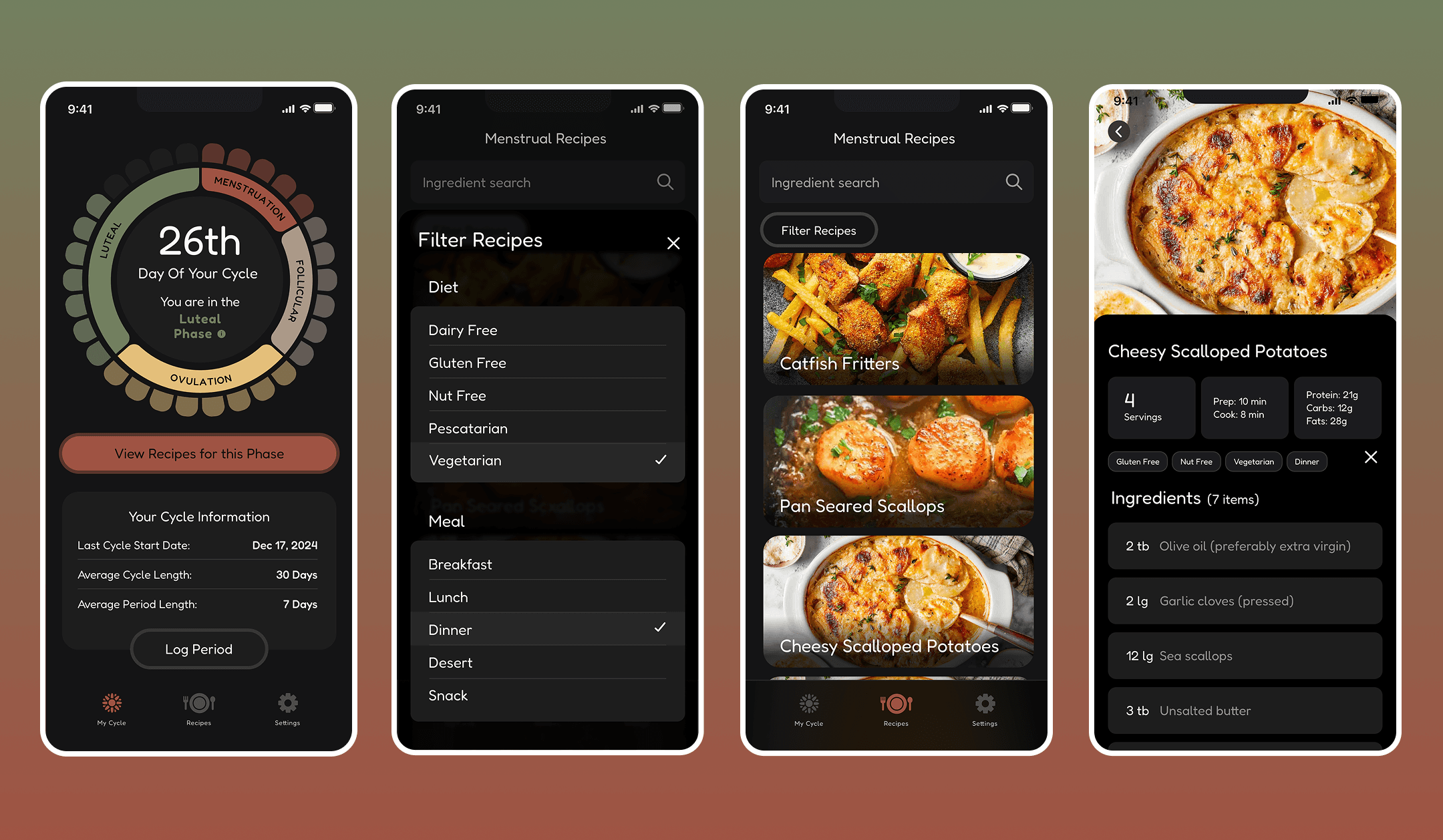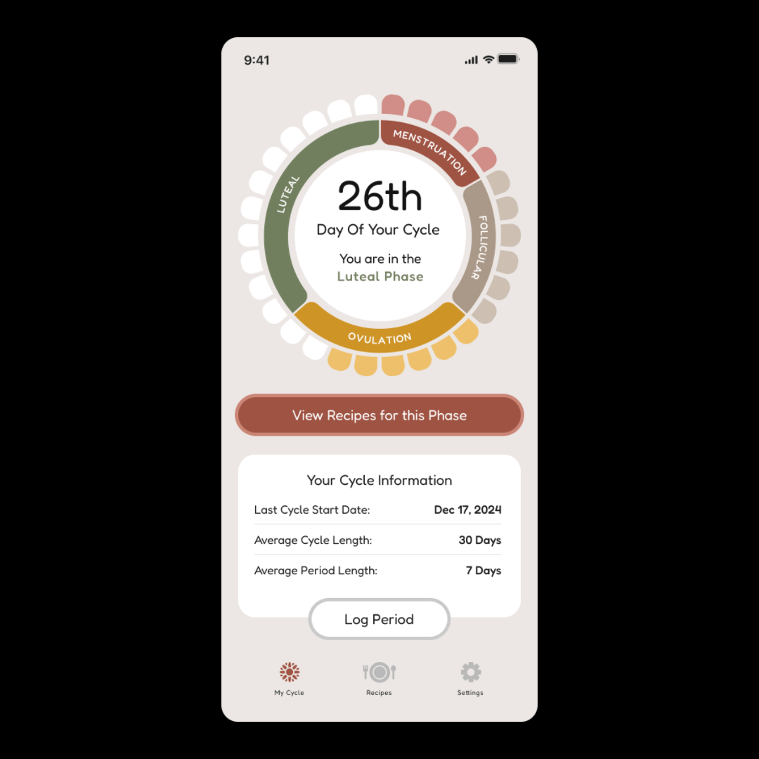 NourishUs is an iOS app crafted by a small but passionate team dedicated to supporting menstrual health through personalized nutrition. By tracking each cycle phase (menstrual, follicular, ovulatory, or luteal) the app provides tailored recipes to meet your body's specific needs for each stage. I helped with the strategy, brand, UX and visual design for the app.